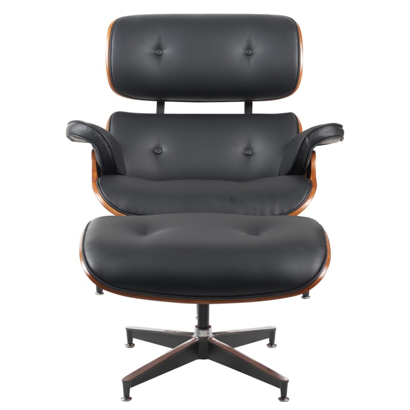 Πολυθρόνα Relax ArteLibre MIREN Με Υποπόδιο Μαύρο/Καφέ Ξύλο/PU 82x92x78cm