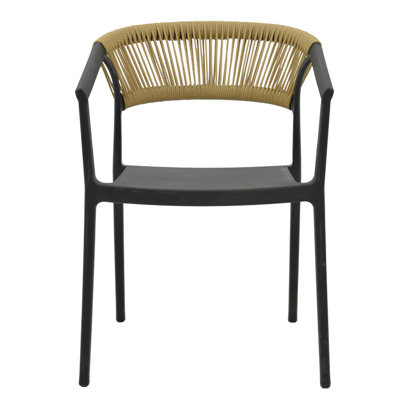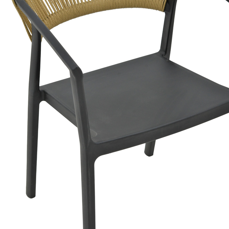 Πολυθρόνα Sillia pakoworld στοιβαζόμενη pp μαύρη απόχρωση με μπεζ rattan 55x52x74.5εκ