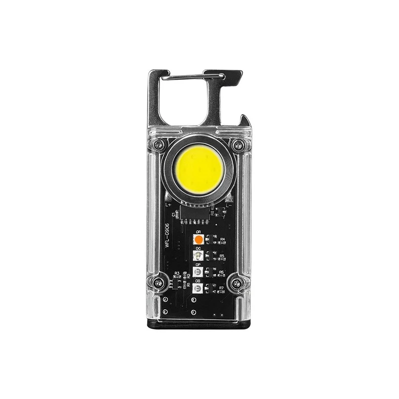 Πολυλειτουργικός mini φακός LED με ισχυρό φωτισμό λευκό και 4 ακόμη χρωμάτων και κλιπ μπρελόκ που μπορεί να τοποθετηθεί παντού: στο ρούχο σας, στο φερμουάρ, στα κλειδιά, στο σακίδιό σας κτλ, ιδανικό για εξωτερικές δραστηριότητες, χόμπυ και εργασία. Διαθέτει επίσης ισχυρό μαγνήτη στο πίσω μέρος για τοποθέτηση σε μεταλλικές επιφάνειες. Χαρακτηριστικά: Χρώμα LED: Λευκό COB, πράσινο, κόκκινο, μωβ, μπλε, λειτουργία SOS. 500 lumens. Στιβαρή κατασκευή με ανθεκτικό περίβλημα ABS. Χρόνος φόρτισης: 2 ώρες. Αυτονομία έως και 20 ώρες στη χαμηλή ένταση. Διαστάσεις: 8 x 3.2 x 2cm. Βάρος: 39g.