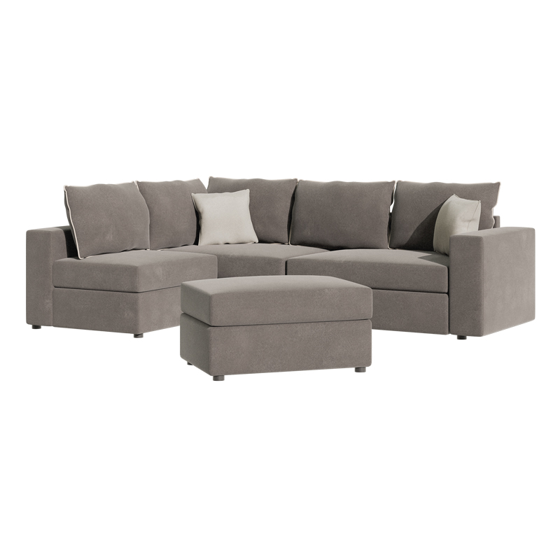 - Μπορεί να τοποθετηθεί ως γωνιακός καναπές μικρότερης διάστασης από τις δύο πρώτες επιλογές (194x122x95εκ), διαθέτοντας το άλλο κομμάτι ως σκαμπό.