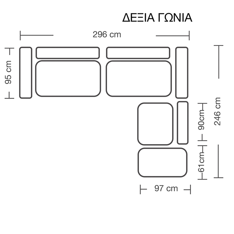 - Μπορεί να τοποθετηθεί ως καναπές με δεξιά γωνία.