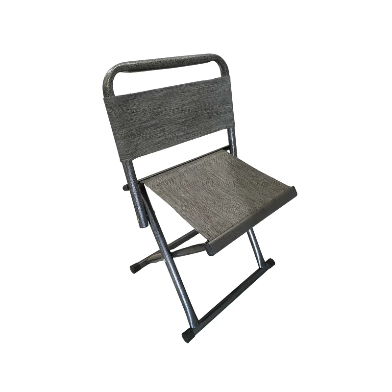 Μεταλλική, πτυσσόμενη καρέκλα-σκαμπώ με πλάτη, ιδανική για την παραλία και το ψάρεμα.