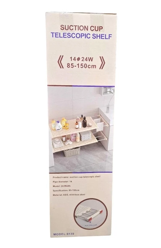 Διαχωριστικό ράφι αποθήκευσης, τηλεσκοπικό, ιδανικό για οργάνωση ντουλάπας ή για τοποθέτηση σε εσοχή τοίχου ώστε να δημιουργήσετε αποθηκευτικό χώρο. Μπορεί να τοποθετηθεί στην ντουλάπα ρούχων, στα ντουλάπια κουζίνας, στην αποθήκη ή το μπάνιο σας. Διαθέτει μαλακά αντιολισθητικά πατάκια για την προστασία των επίπλων ή του τοίχου από φθορές. Οι σωλήνες που προεξέχουν από τη βάση ραφιού μπορούν να χρησιμοποιηθούν ως κρεμάστρες.