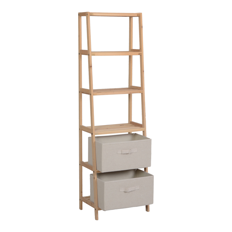 Ραφιέρα δαπέδου με συρτάρια Wolen pakoworld ξύλο ελάτου-ύφασμα σε φυσική-μπεζ απόχρωση 42×27.5×139εκ