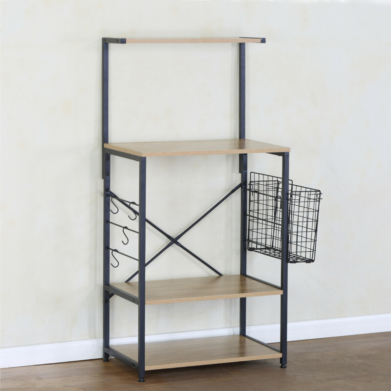 Ραφιέρα Κουζίνας ArteLibre GRANTHAM Δρυς/Μαύρο Μοριοσανίδα/Μέταλλο 60x40x123cm