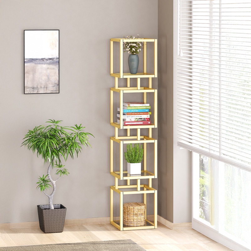 Kubo, Μια ξεχωριστική επιδαπέδια ραφιέρα στήλη που συνδυάζει την λειτουργικότητα με την αισθητική καθώς με το πρωτότυπο σχήμα της και τη γυάλινη επιφάνεια της , σίγουρα θα τραβήξει τα βλέματα, όπου κι αν το τοποθετήσετε. Προσφέρει μια αίσθηση πολυτέλειας και αντοχής, ενώ ο μεταλλικός σκελετός από χρυσό προσθέτει μια πινελιά λάμψης και εκλέπτυνσης. Οι καθαρές γραμμές και το γεωμετρικό του σχέδιο, δημιουργούν ένα κομψό και διαχρονικό αισθητικό αποτέλεσμα.