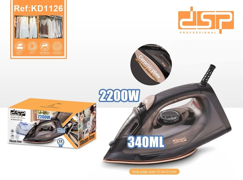 Σίδερο ατμού από την DSP, με εργονομικό σχεδιασμό και υψηλή απόδοση ατμού, ιδανικό για το καθημερινό σας σιδέρωμα.