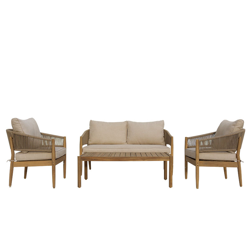 Σαλόνι εξωτερικού χώρου Lemanda pakoworld μασίφ ξύλο ακακίας με σχοινί και μπεζ μαξιλάρια