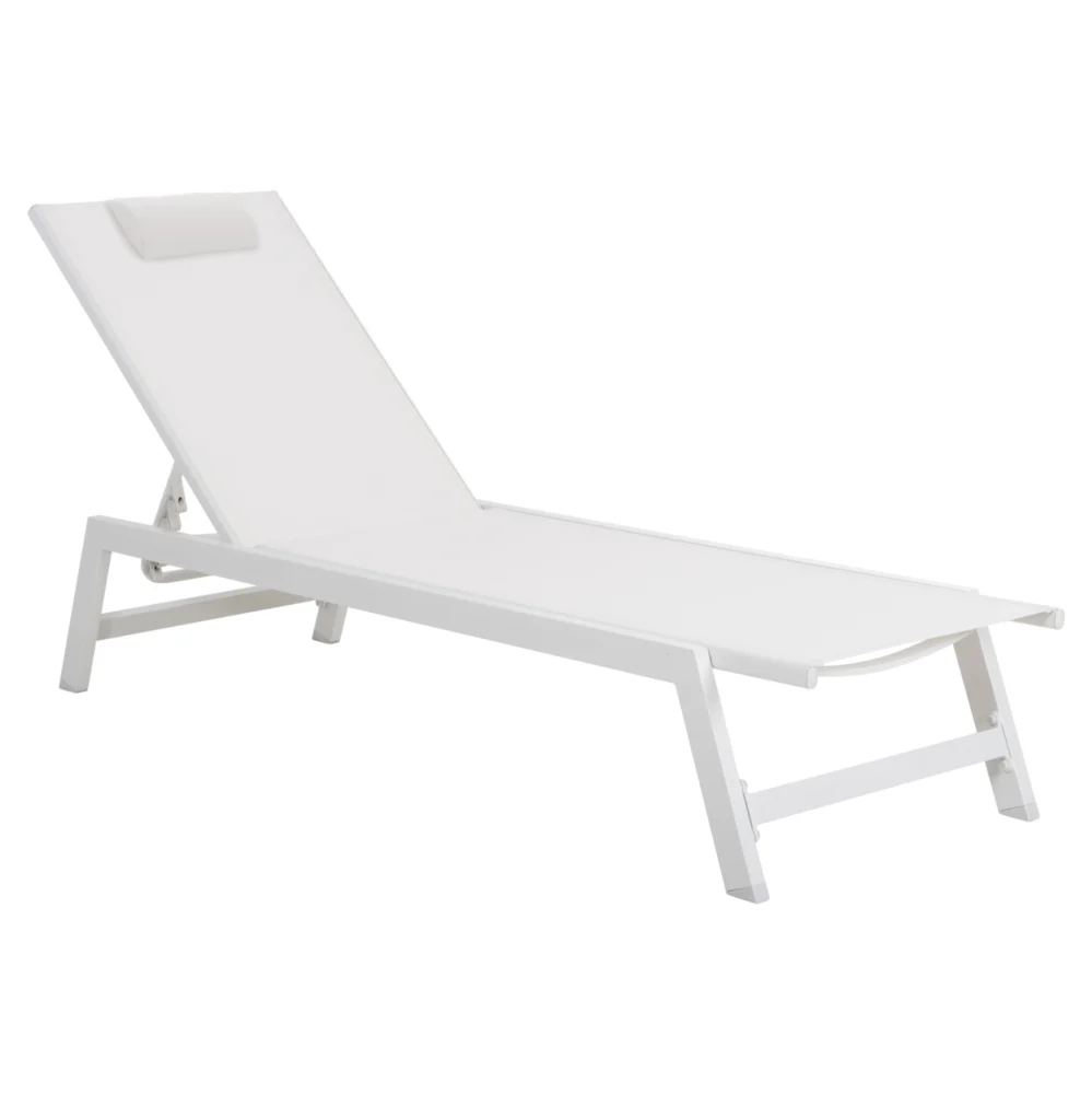 Σεζλόνγκ Feisty pakoworld αλουμίνιο λευκό-textilene γκρι-εκρού-μαξιλάρι 65x83x86εκ