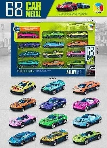Aυτοκινητάκια μεταλλικά, σετ 12 τεμαχίων, με διάφορα πολύχρωμα σχέδια και ποικιλία σχεδιασμού, με Pull Back.