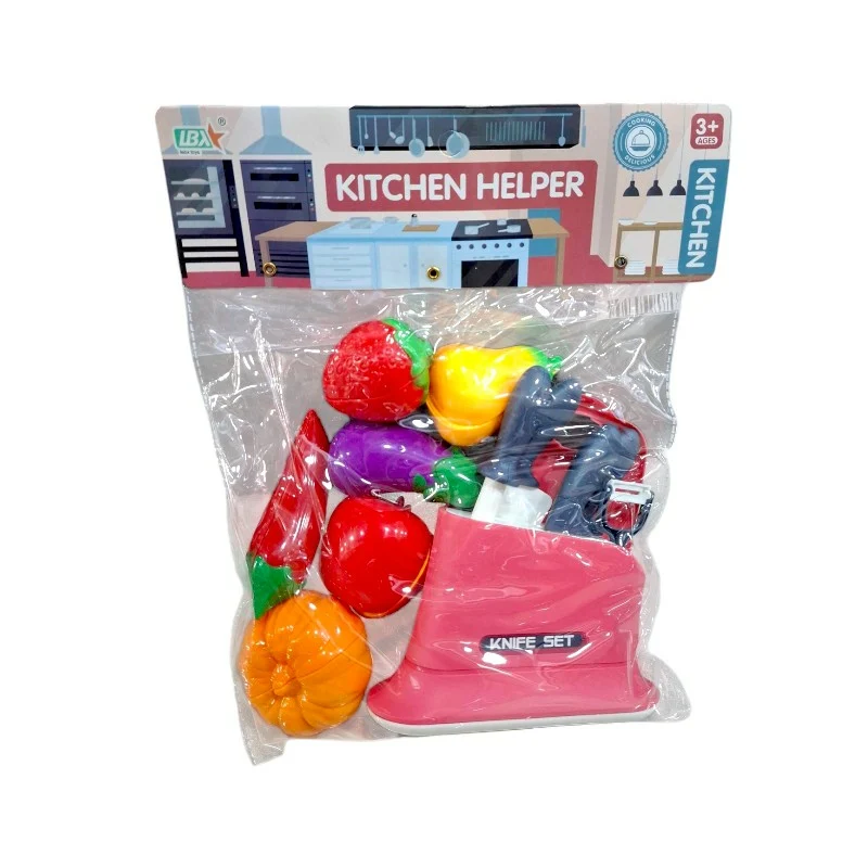 Παιδικό σετ κοπής τροφίμων με αξεσουάρ, σκεύη και τρόφιμα, σε υπέροχο πολύχρωμο σχεδιασμό.
