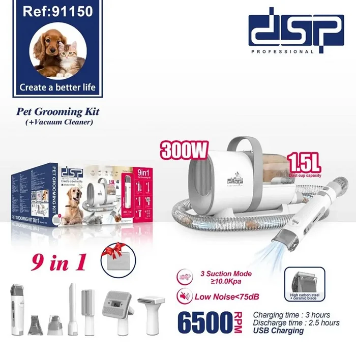 Σετ κουρέματος-χτενίσματος κατοικιδίων με αναρρόφηση – 91150 – DSP – 616195