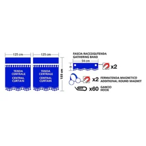 -To σετ περιλαμβάνει: 2 κουρτίνες-παράθυρο, 2 μαγνητικές ταινίες, 60 πλαστικά άγκιστρα.