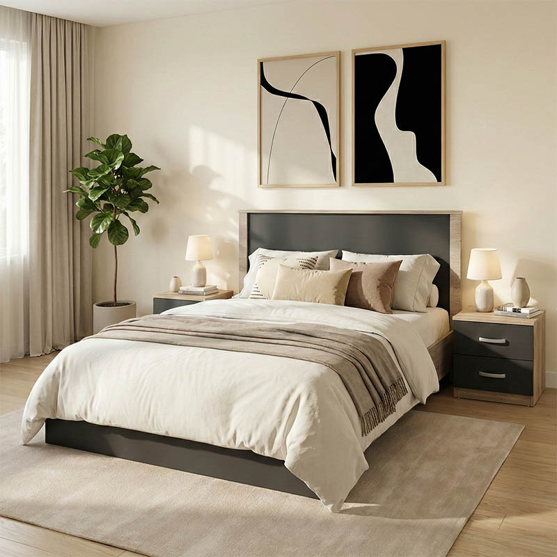 Σετ Κρεβατοκάμαρας Athos Sonoma Ανθρακί με Κρεβάτι 140×200εκ Σετ 3τεμ