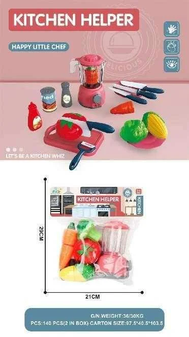 Παιδικό σετ κουζίνας με μπέντερ, αξεσουάρ, σκεύη και τρόφιμα, σε υπέροχο πολύχρωμο σχεδιασμό.