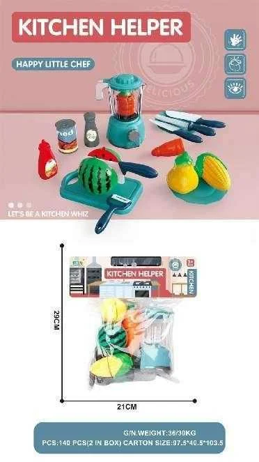 Παιδικό σετ κουζίνας με μπλέντερ, αξεσουάρ, σκεύη και τρόφιμα, σε υπέροχο πολύχρωμο σχεδιασμό.