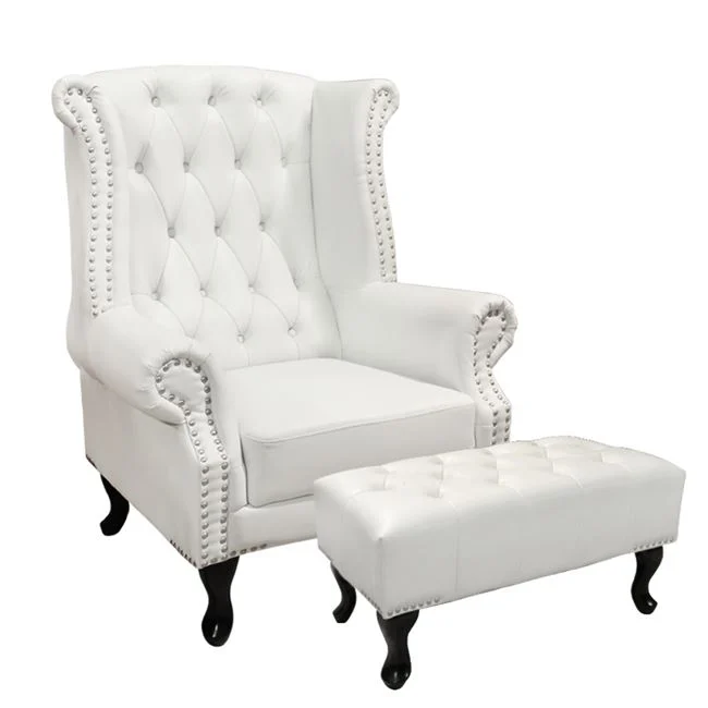 Σετ πολυθρόνα μπερζέρα και υποπόδιο, τύπου chesterfield καπιτονέ απο λευκό ματ τεχνόδερμα υψηλής ποιότητας και ενισχυμένο ξύλινο σκελετό στο εσωτερικό του και στα πόδια .