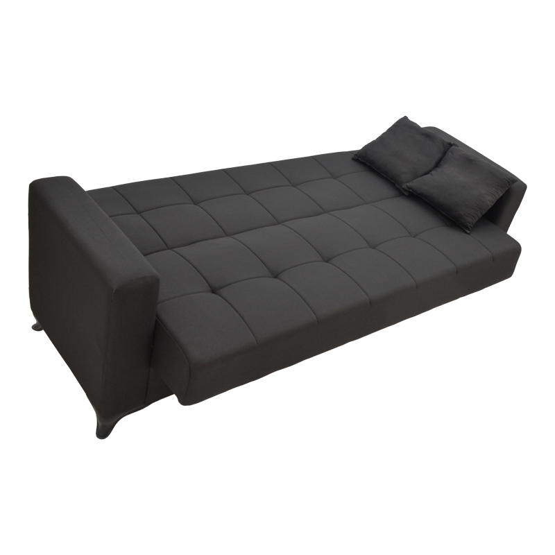 1. Καναπές-κρεβάτι με αποθηκευτικό χώρο τριθέσιος Modesto pakoworld μαύρο ύφασμα 215x85x80εκ
