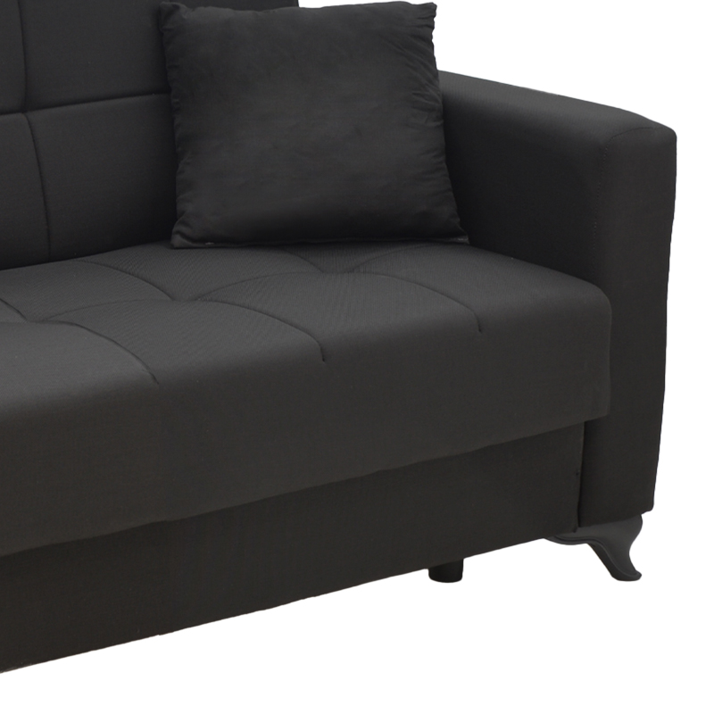 2. Καναπές-κρεβάτι με αποθηκευτικό χώρο διθέσιος Modestο pakoworld μαύρο ύφασμα 155x85x80εκ