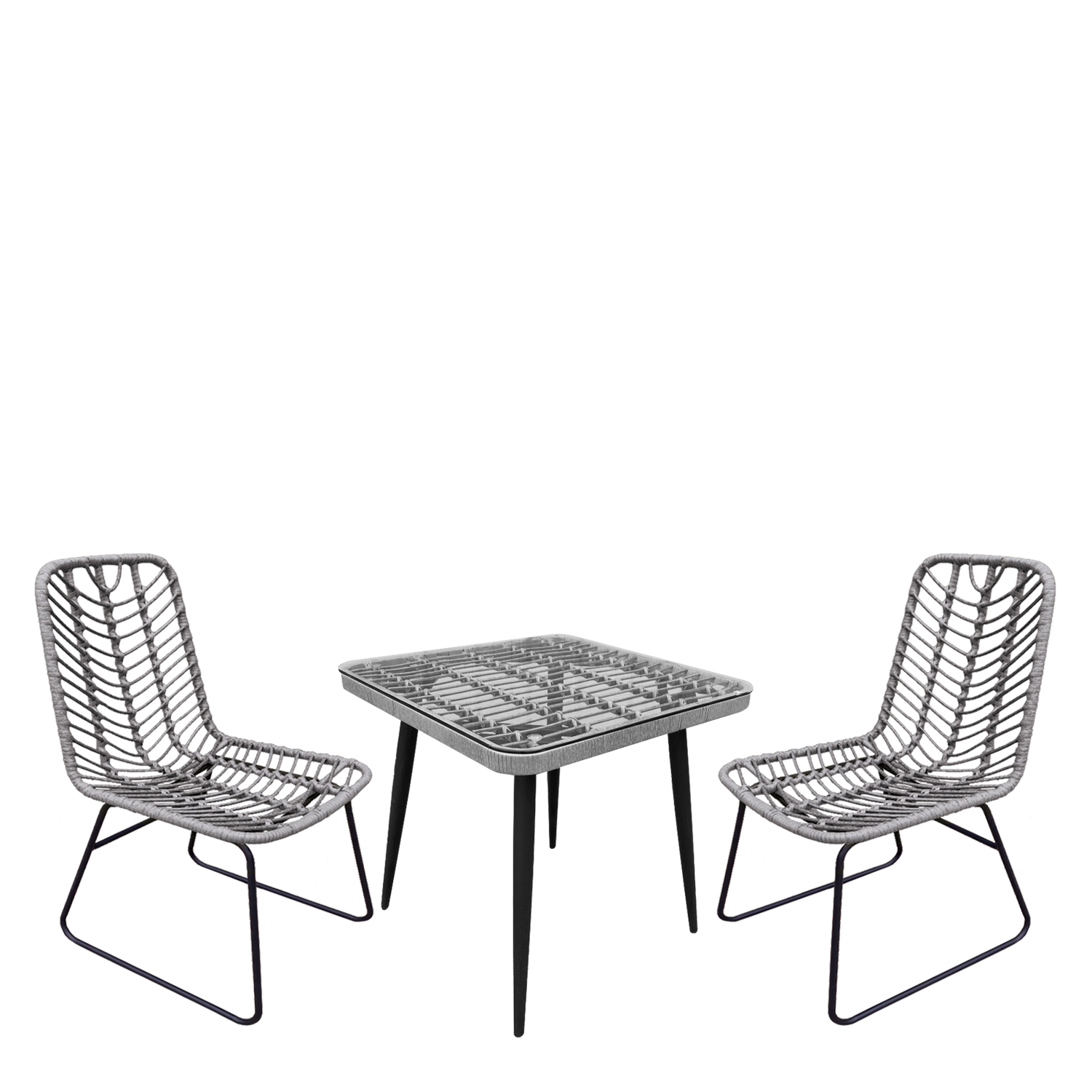 Σετ Τραπεζαρία Κήπου ArteLibre CALI Γκρι/Μαύρο Μέταλλο/Rattan/Γυαλί Με 2 Καρέκλες 14990454