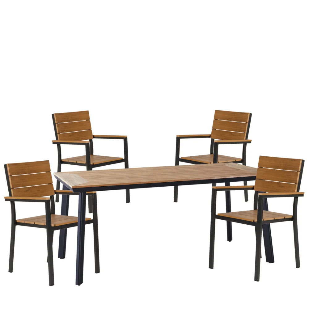 Σετ Τραπεζαρία Κήπου ArteLibre EPUPA Μαύρο/Καρυδί Αλουμίνιο/Ξύλο Με 4 Πολυθρόνες 14990198