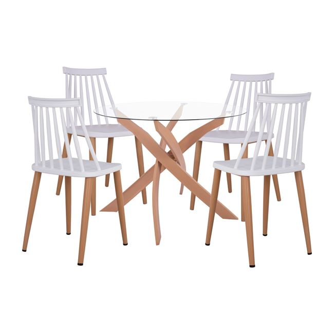 ΣΕΤ ΤΡΑΠΕΖΑΡΙΑΣ 5ΤΜΧ ΚΑΡΕΚΛΕΣ VANESSA ΛΕΥΚΕΣ & ΤΡΑΠΕΖΙ ΜΕΤΑΛΛΙΚΟ Φ90X74Υ HM11304