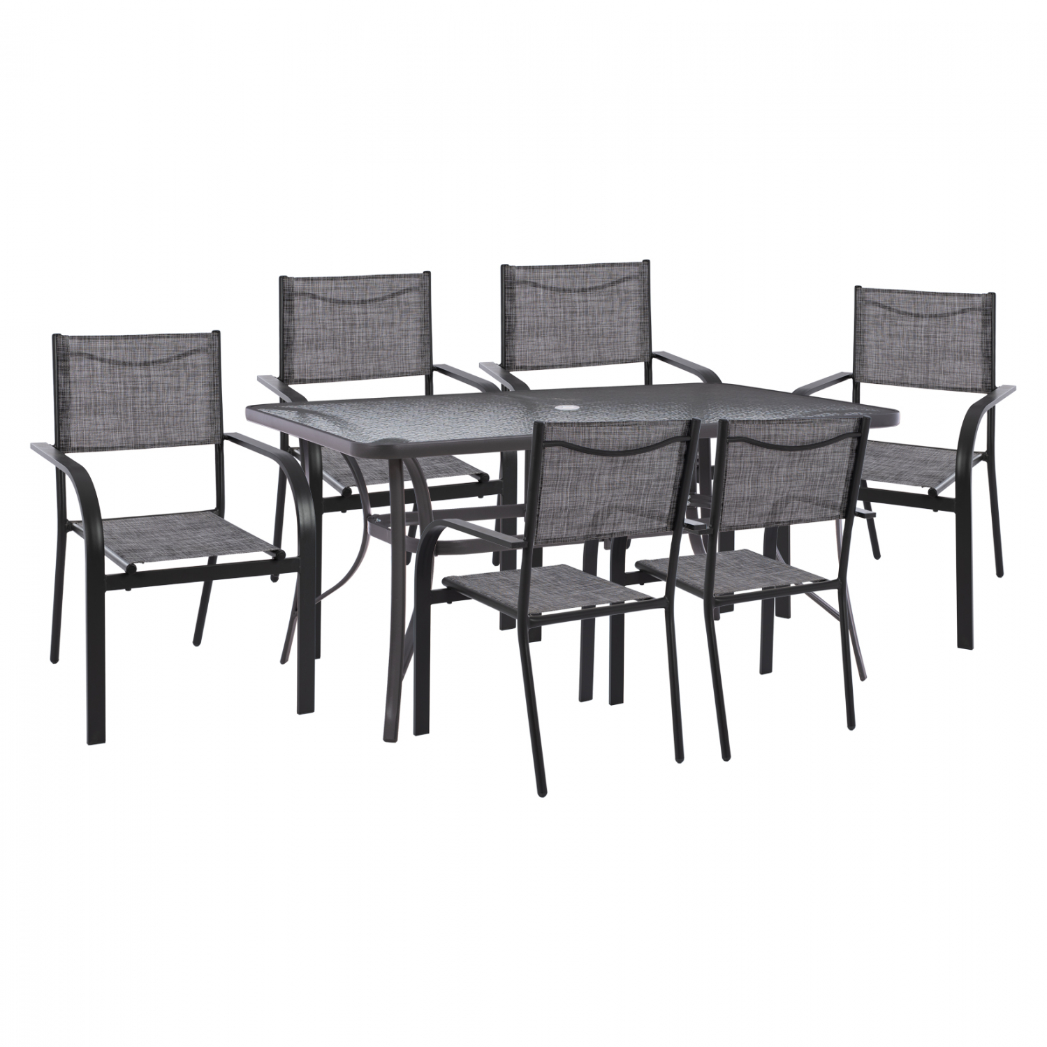 ΣΕΤ ΤΡΑΠΕΖΑΡΙΑΣ 7 ΤΜΧ ΤΡΑΠΕΖΙ ΓΚΡΙ 150X90 ΚΑΙ ΠΟΛΥΘΡΟΝΑ TEXTLINE ΓΚΡΙ HM11532.01