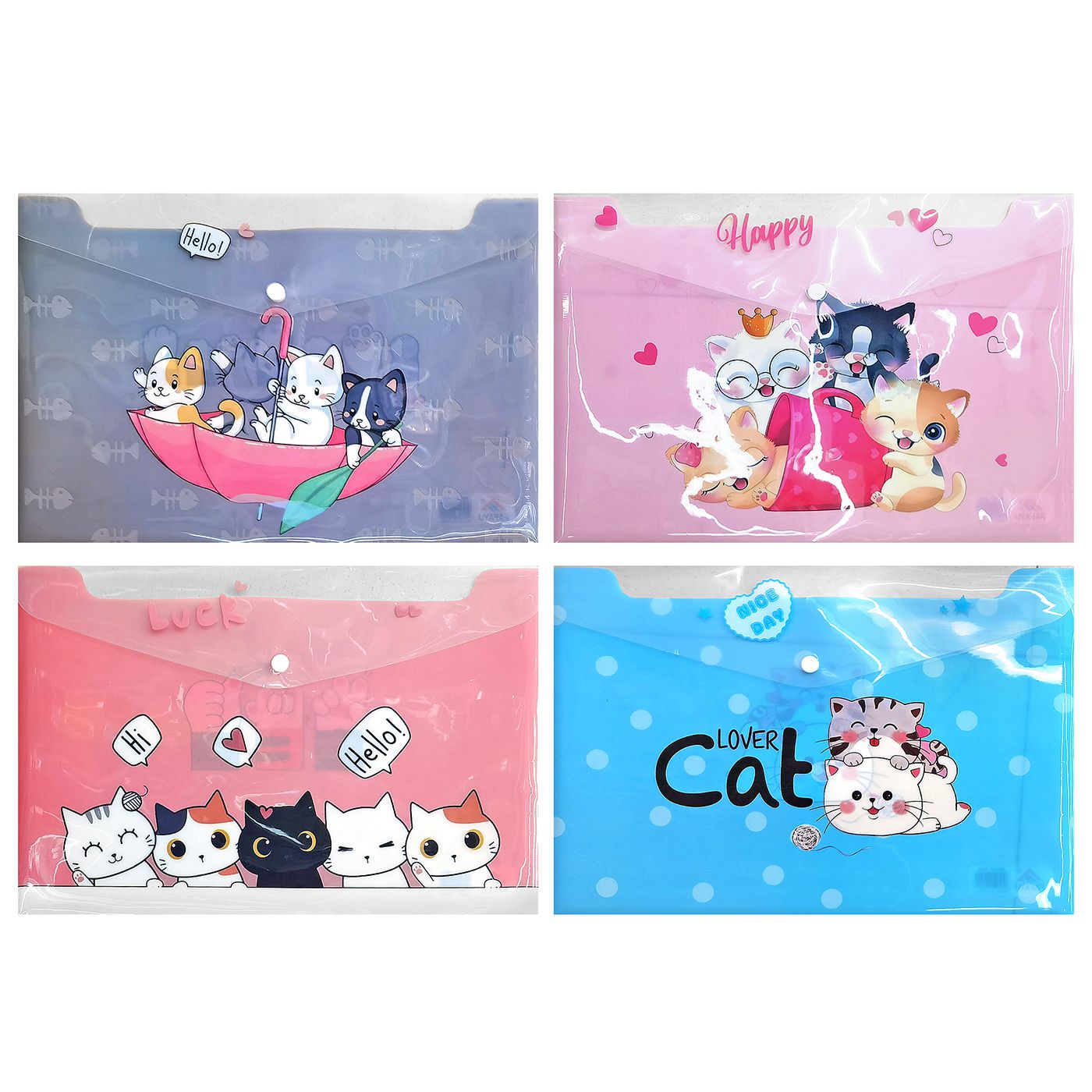Σετ 12 τεμαχιών Φάκελος Κουμπί Α4 Γάτες 35x25cm JustNote 703460