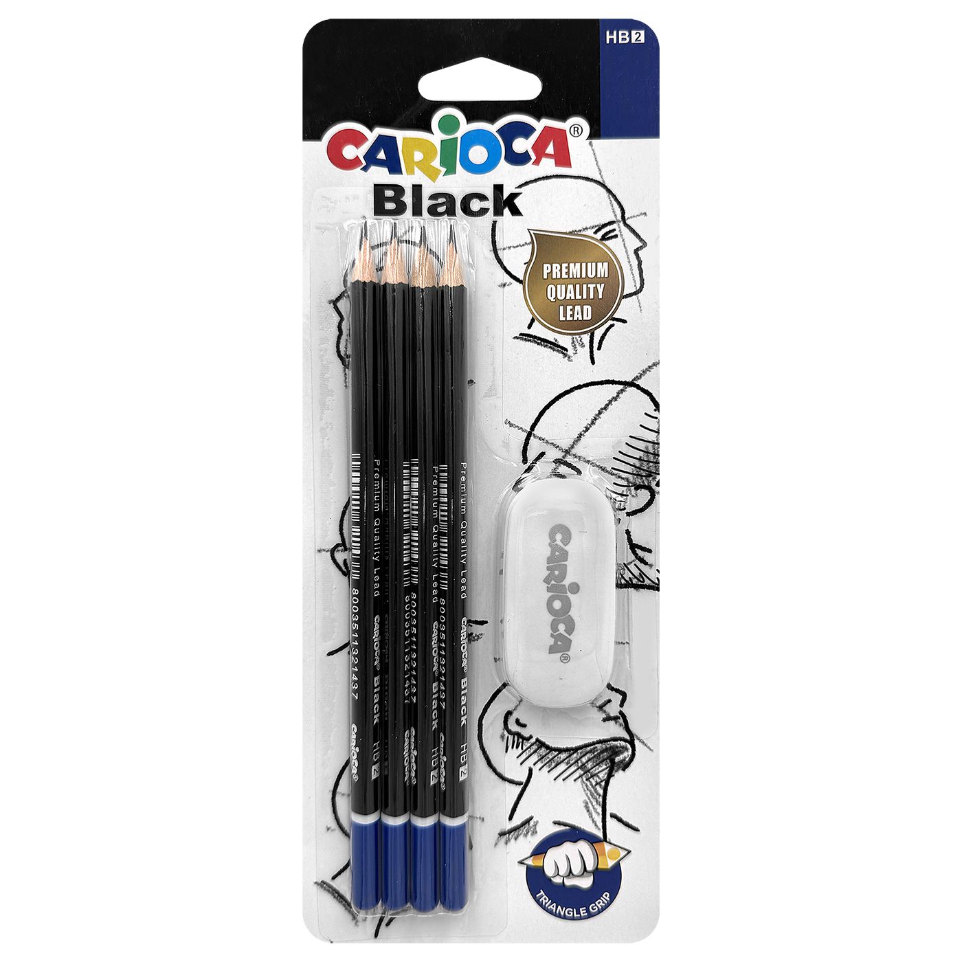 Σετ=4 μολύβια & 1 γόμα. Carioca