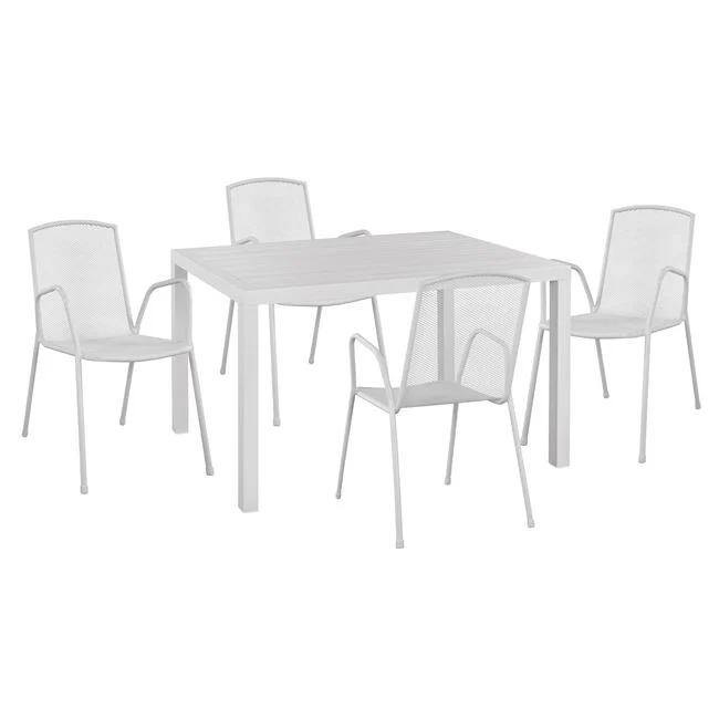 ΣΕΤ 5ΤΜΧ ΜΕ ΤΡΑΠΕΖΙ ΑΛΟΥΜΙΝΙΟΥ 120Χ80Χ75,5Υ & ΚΑΡΕΚΛΕΣ ΜΕΤΑΛΛΙΚΕΣ HM10526 ΛΕΥΚΟ