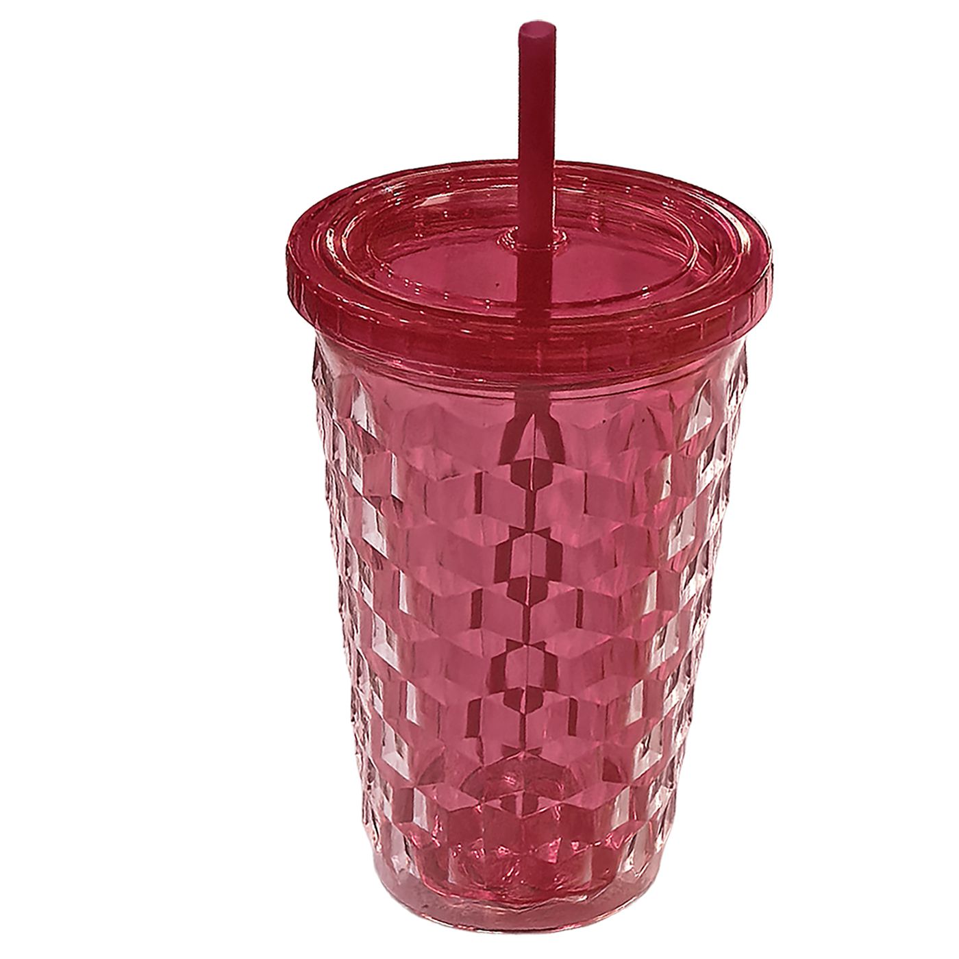 (ασσορτί) Ποτήρι διπλότοιχο πλαστικό με καλαμάκι 16x10cm 526ml