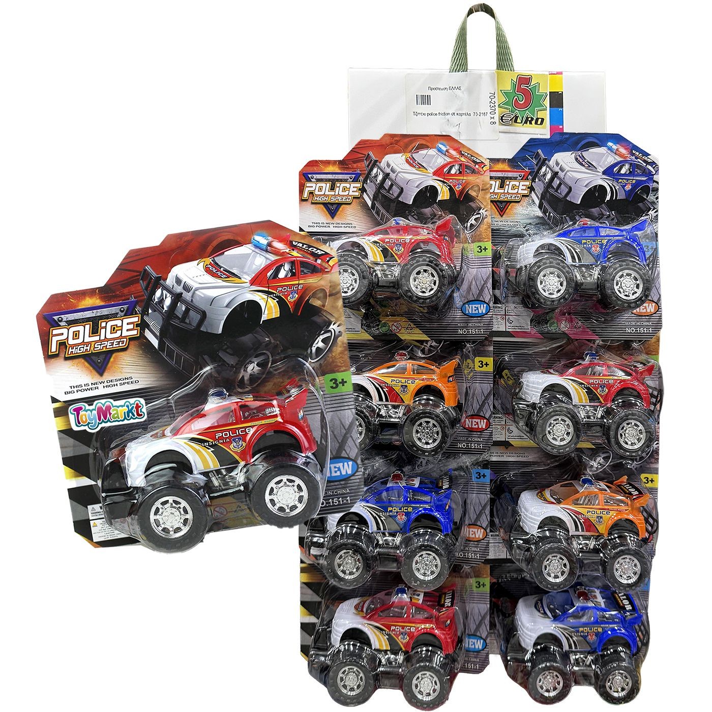 Σετ 8 τεμαχιών Τζιπάκι Police Friction σε Καρτέλα 20x20x9cm ToyMarkt 902187