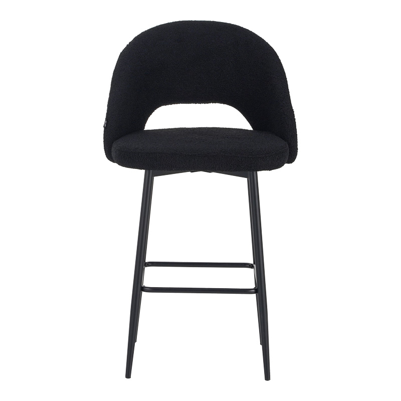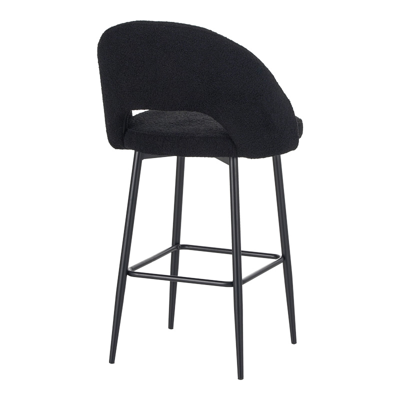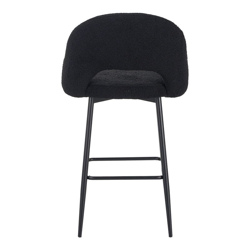 Σκαμπο μπαρ Masebo pakoworld μπουκλέ ύφασμα σε μαύρη απόχρωση με μαύρα μεταλλικά πόδια 48x52x97εκ