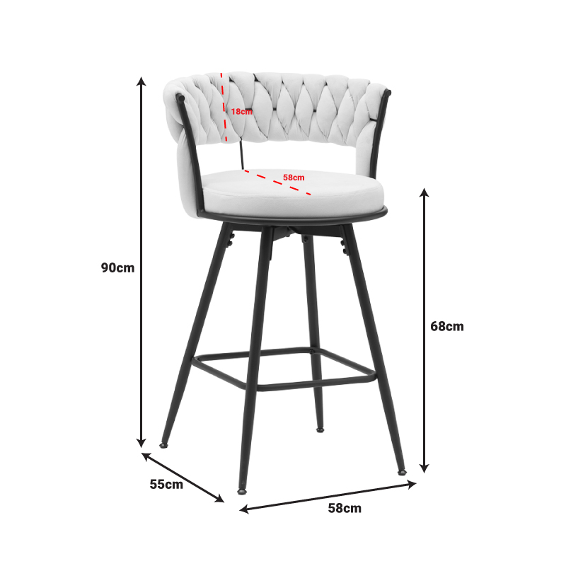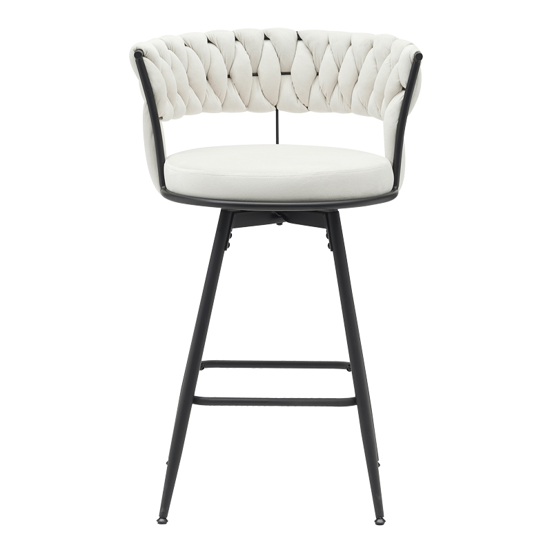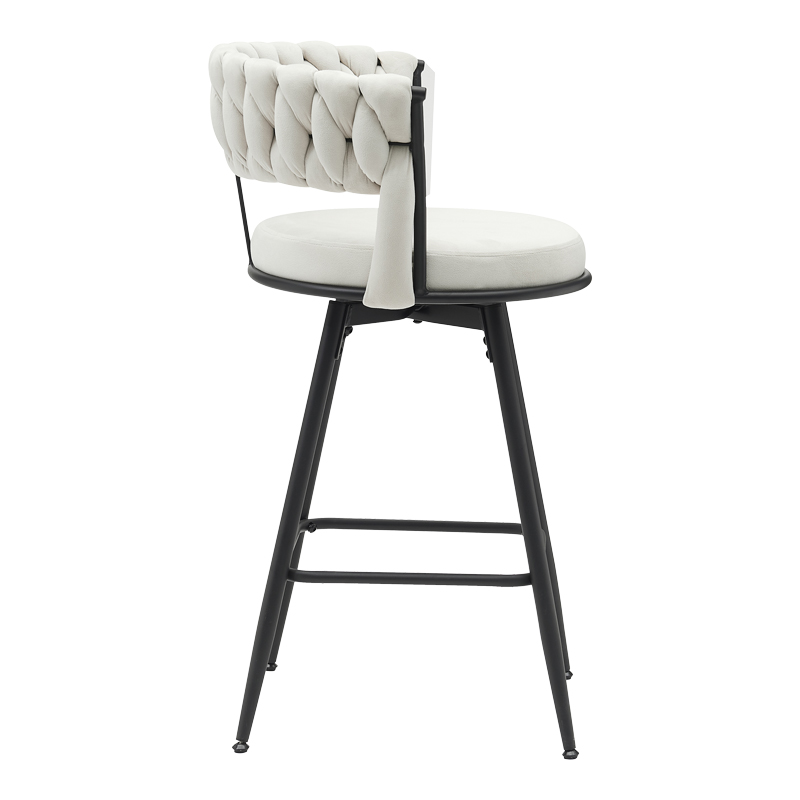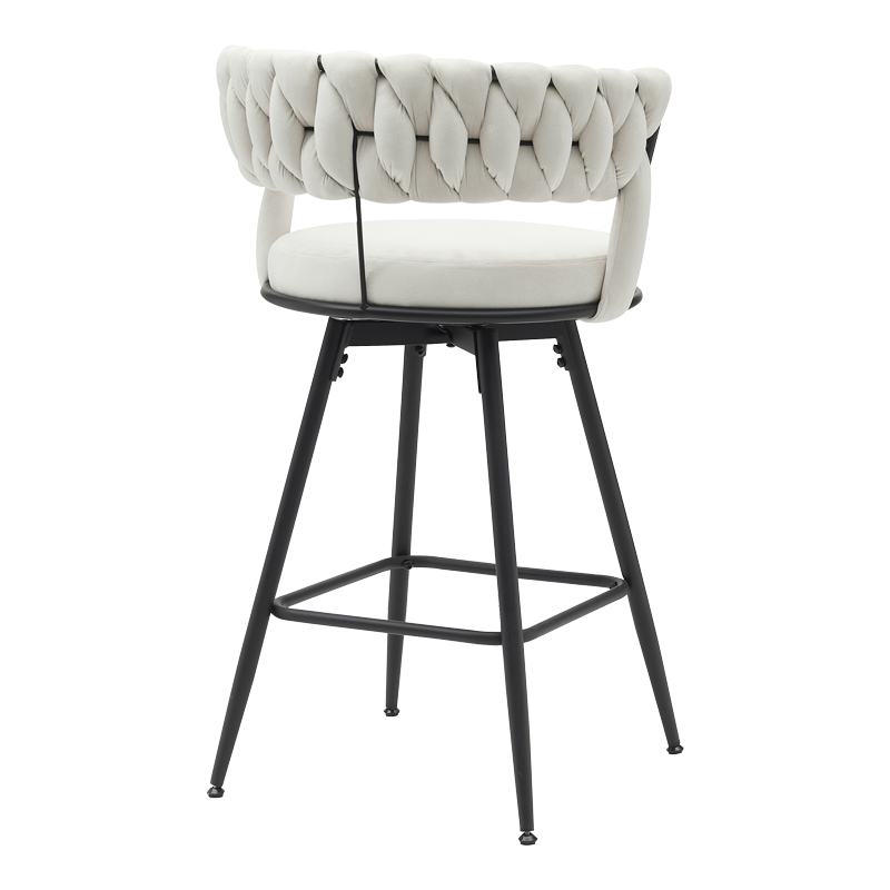 Σκαμπό μπαρ Alkia pakoworld περιστρεφόμενο σε μπεζ βελούδο με μαύρα πόδια μέταλλο 58x55x90εκ