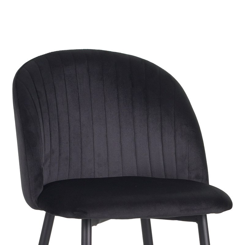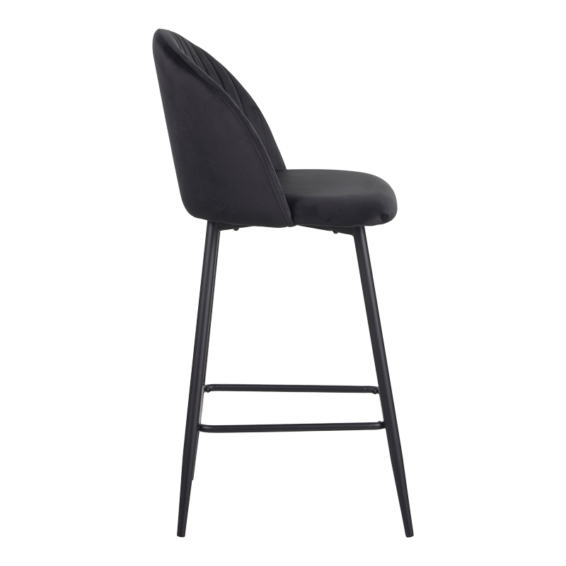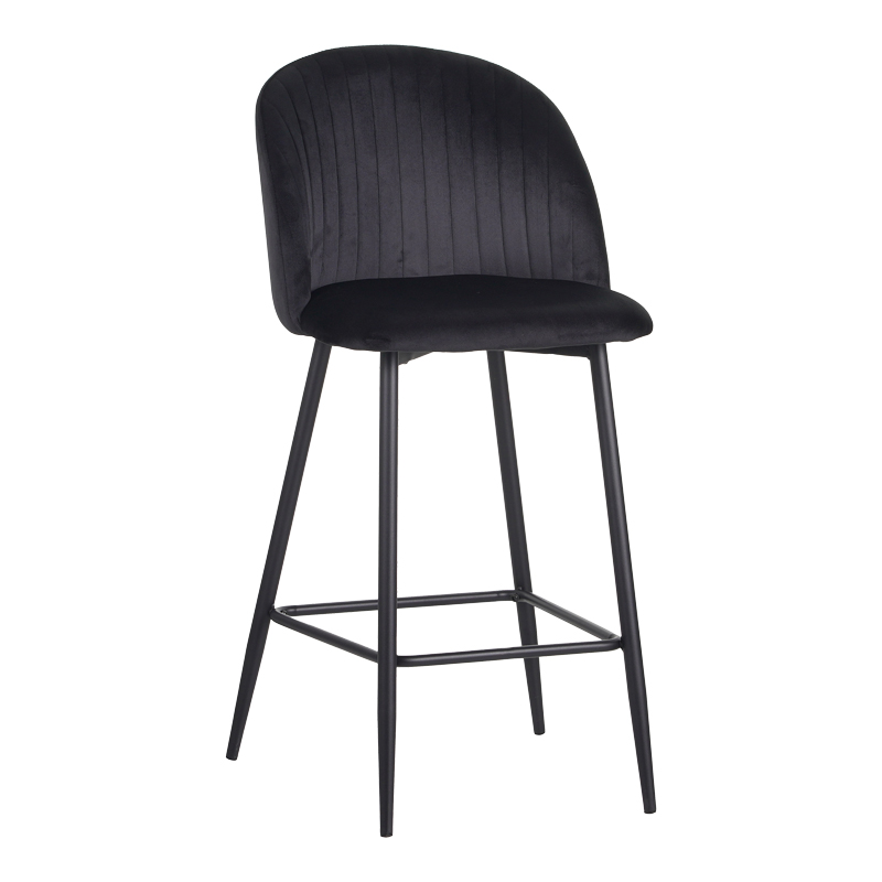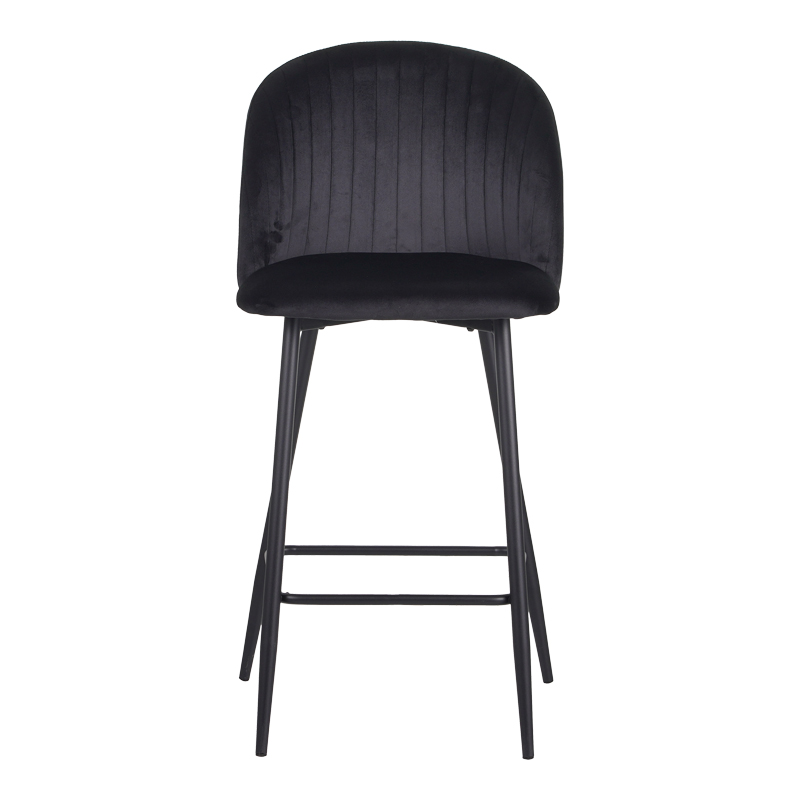 Σκαμπό μπαρ Barow pakoworld βελούδο σε μαύρη απόχρωση με μαύρα μεταλλικά πόδια 53×46.5×96.5