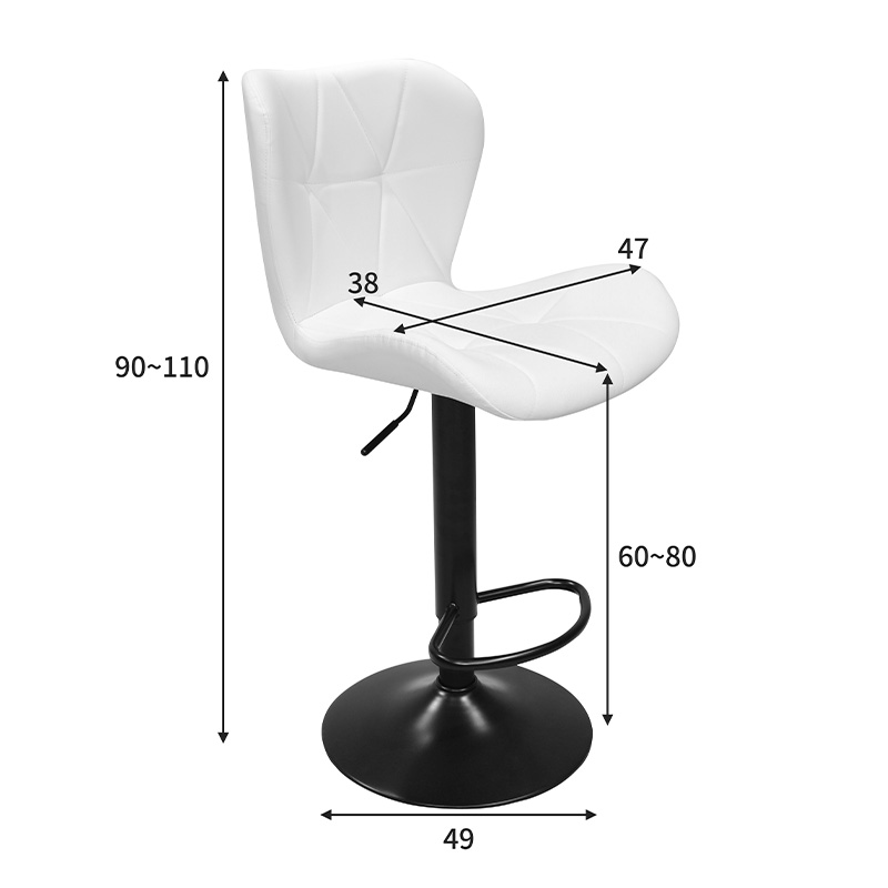 Σετ 2 τεμαχίων – Σκαμπό μπαρ Coozy pakoworld πτυσσόμενο μεταλλικό μαύρο ματ με pu σε λευκή απόχρωση 46x47x90-112εκ