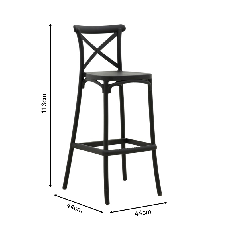 Σκαμπό μπαρ Crossie pakoworld pp μαύρο 44x44x113εκ