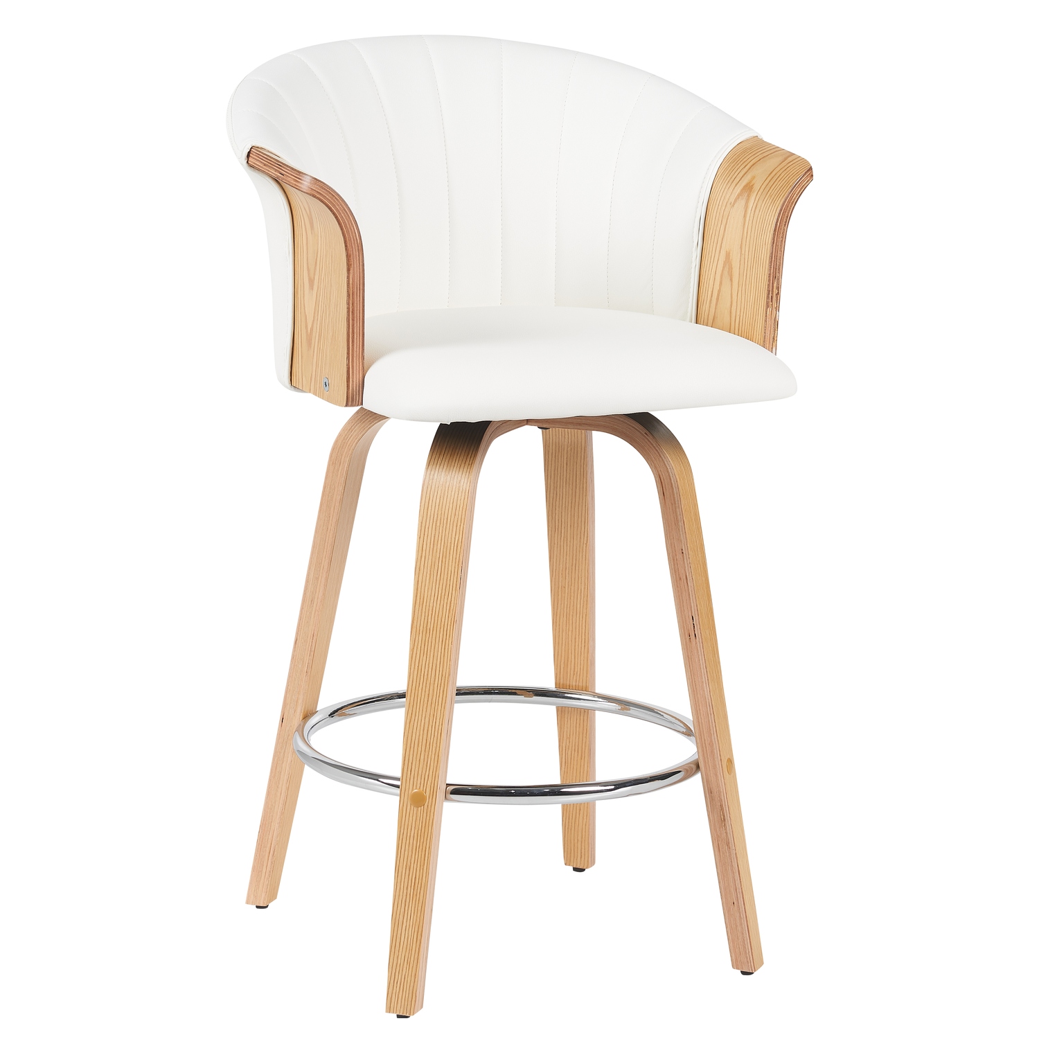 Σετ 2 τεμαχιών Σκαμπό Bar ArteLibre CASSIAN Λευκό/Φυσικό Ξύλο/PU 50x50x103cm