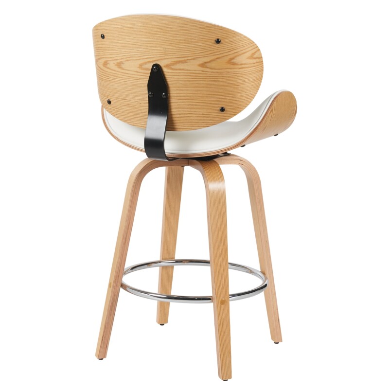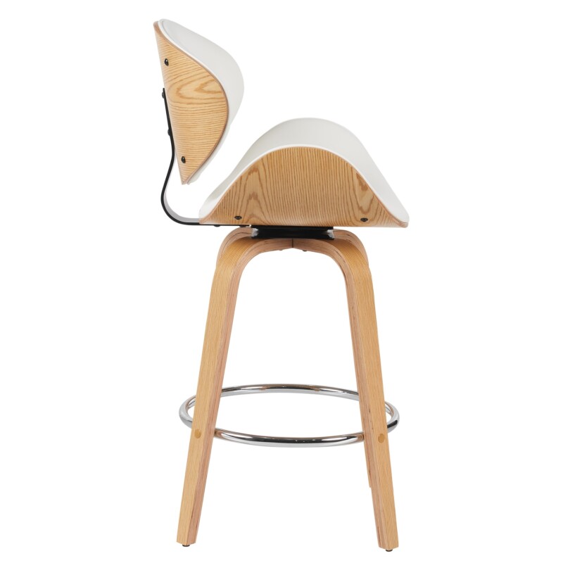 Σκαμπό Bar ArteLibre LYRIAN Λευκό/Φυσικό Ξύλο/PU 52x55x107cm