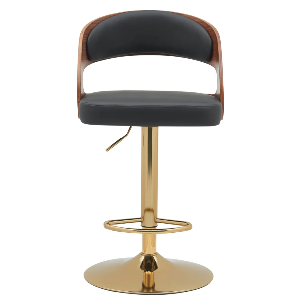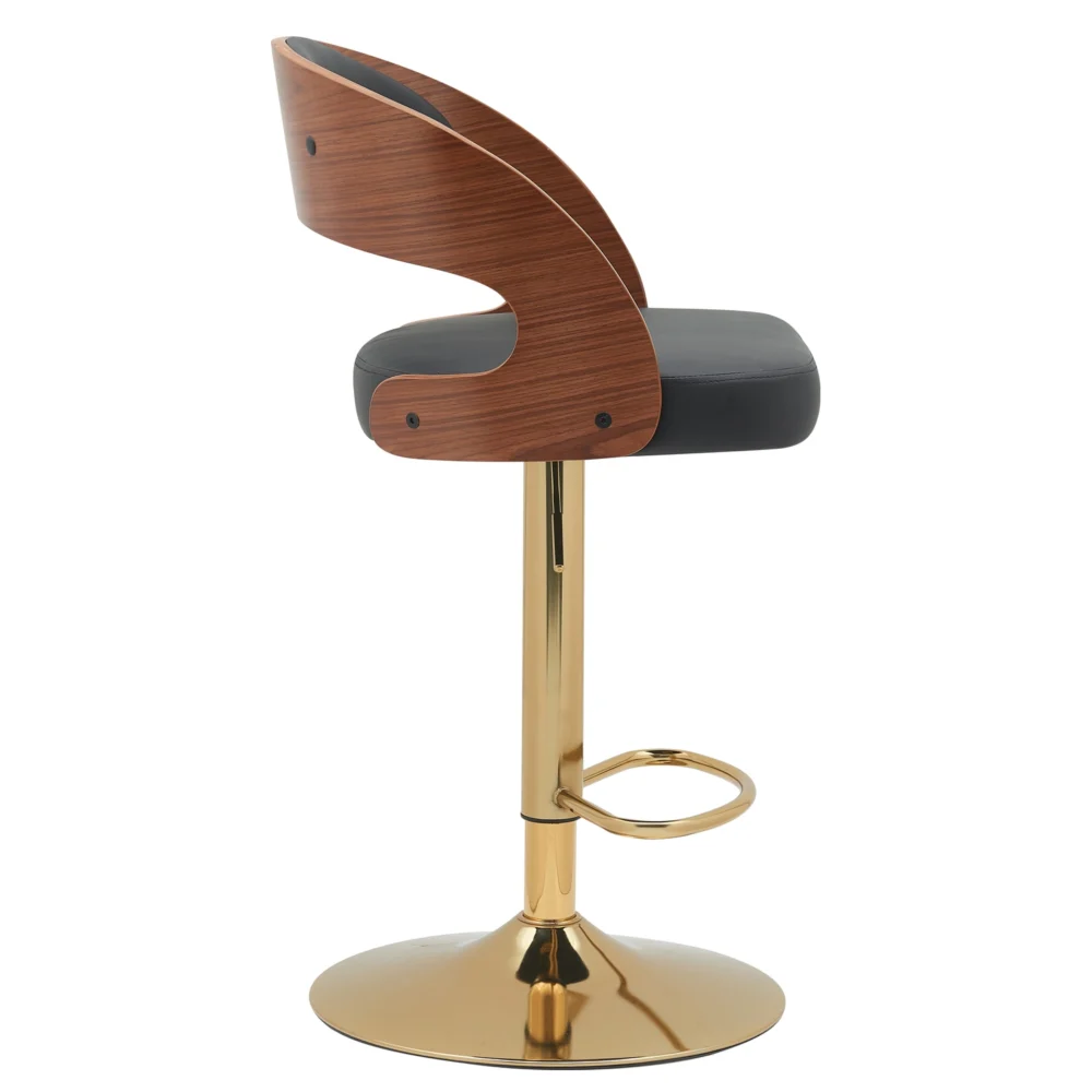Σκαμπό Bar ArteLibre SINDRI Μαύρο/Καφέ Ξύλο/PU/Αλουμίνιο 48x49x91-112cm