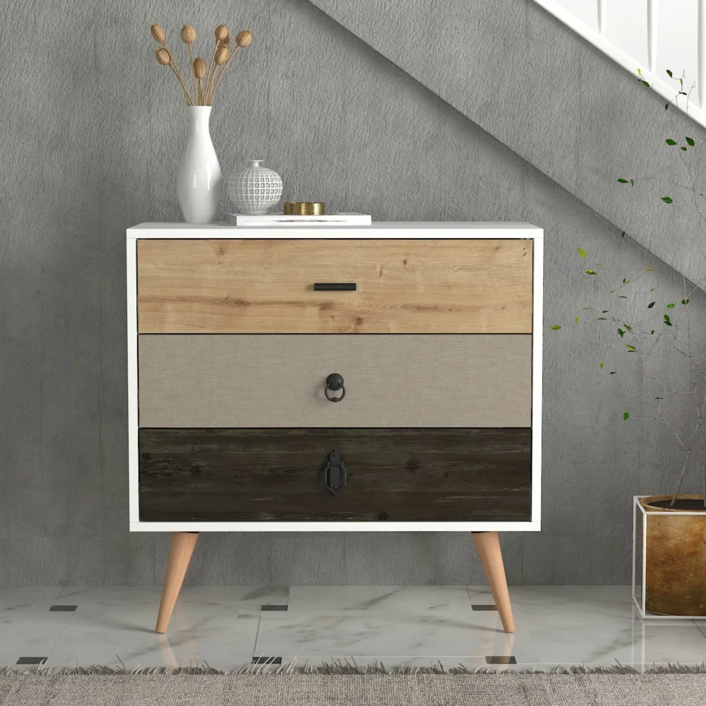 Συρταριέρα ArteLibre KIMOLOS Λευκό/Φυσικό/Καφέ 80x40x79cm