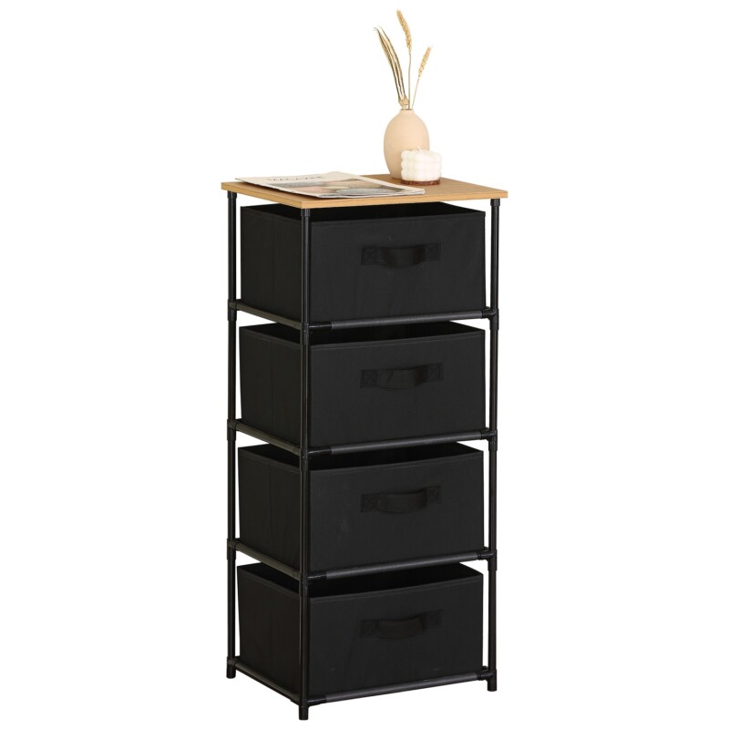 Συρταριέρα ArteLibre MIFUNE Με 4 Συρτάρια Μαύρο/Δρυς Μέταλλο/Non-Woven/Μοριοσανίδα 40x30x89cm