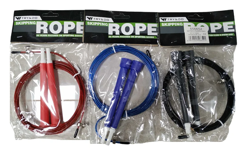 Σχοινάκι γυμναστικής εργονομικό και εξαιρετικά ελαφρύ, ιδανικό για υψηλές αποδόσεις στην προπόνηση. Με ομαλή περιστροφή, κατασκευασμένο από υλικά υψηλής ανθεκτικότητας, αποτελεί ιδανική επιλογή για αρχάριους χρήστες ή και προχωρημένους. Ενδείκνυται για έντονη, συχνή χρήση. *Συνιστάται η χρήση σε λείες επιφάνειες. Εργονομικές Λαβές. Λεπτό μεταλλικό συρματόσχοινο με κάλυμμα. Μήκος: 3m. Ρυθμιζόμενο μήκος με βίδες.