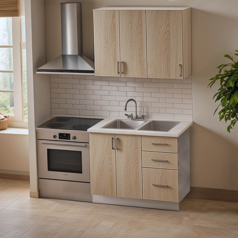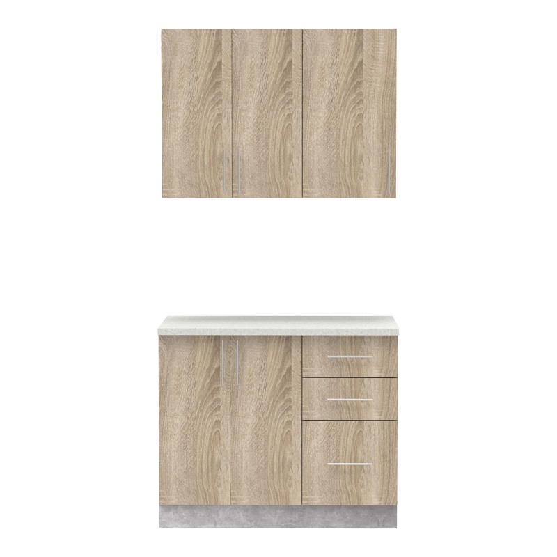 Σύνθεση κουζίνας Festa I pakoworld μελαμίνη σε sonoma απόχρωση και πάγκο σε ανοιχτό γκρι 100x60x85εκ