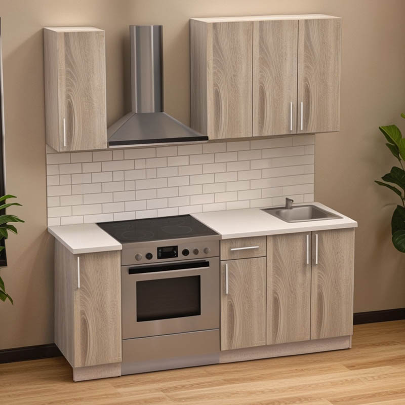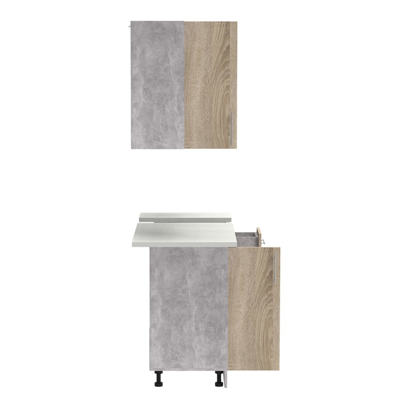 Σύνθεση κουζίνας Festa II pakoworld μελαμίνη σε sonoma απόχρωση και πάγκο σε ανοιχτό γκρι 120x60x85εκ