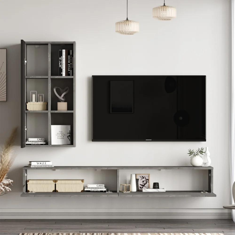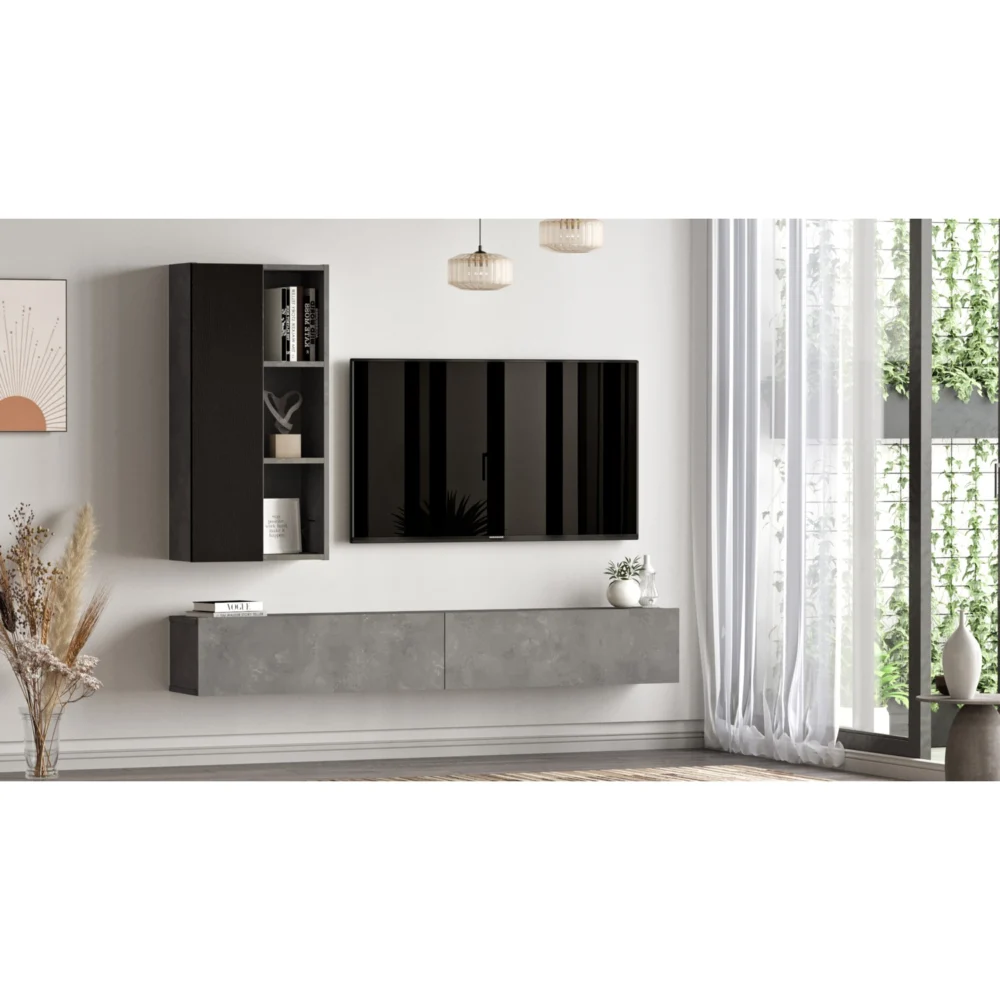 Σύνθετο ArteLibre ANERLEY Σκούρο Καφέ/Γκρι Με Εφέ Τσιμέντο Μοριοσανίδα 174.6×27.3x25cm/48.2x22x97.6cm