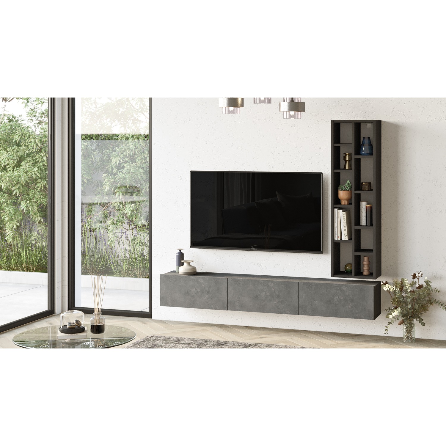 Σύνθεση τηλεόρασης Free Megapap χρώμα ανθρακί – γκρι σκυροδέματος 210x35x38εκ.