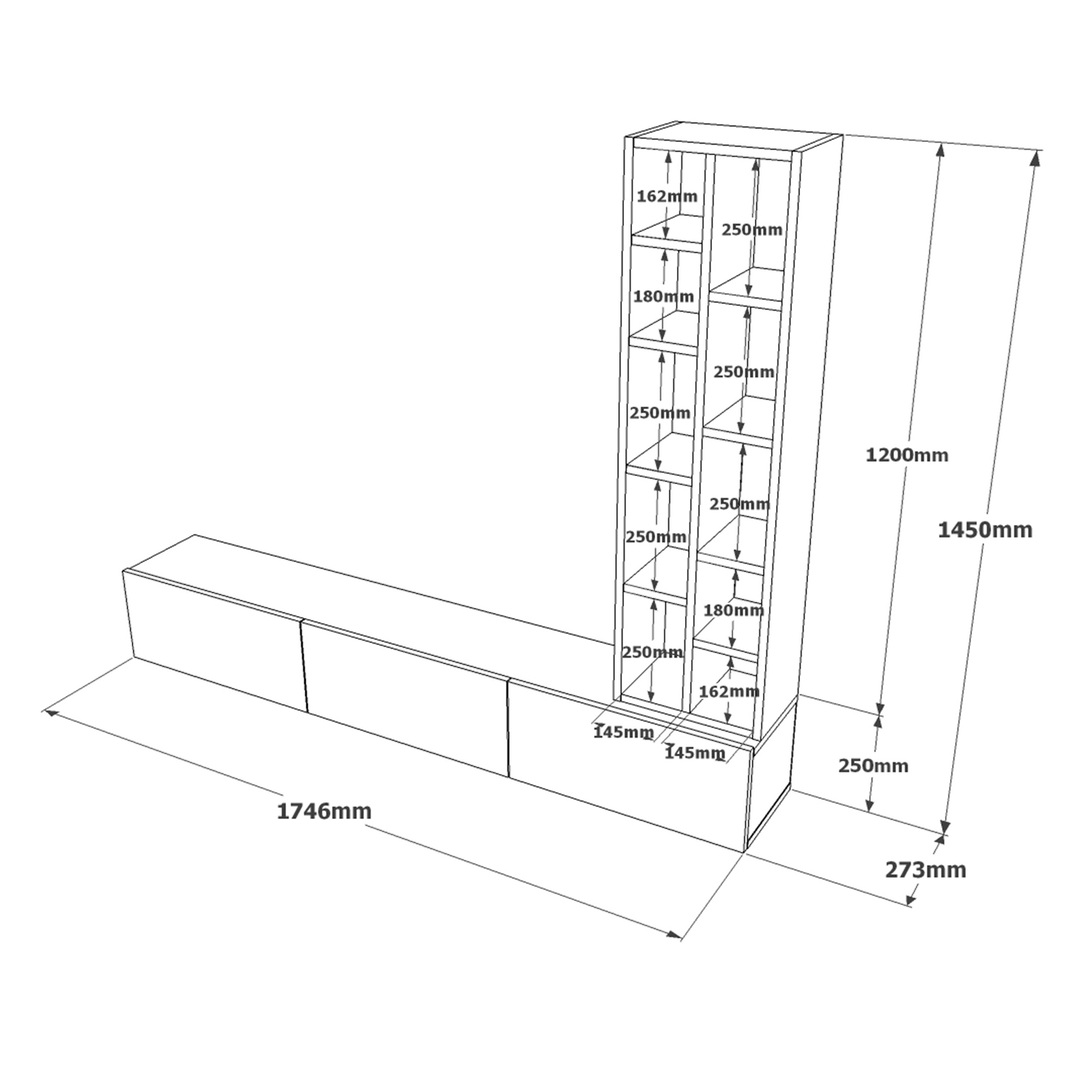 Σύνθετο ArteLibre BROMLEY Μαύρο/Γκρι Με Εφέ Τσιμέντο Μοριοσανίδα 174.6×27.3x145cm