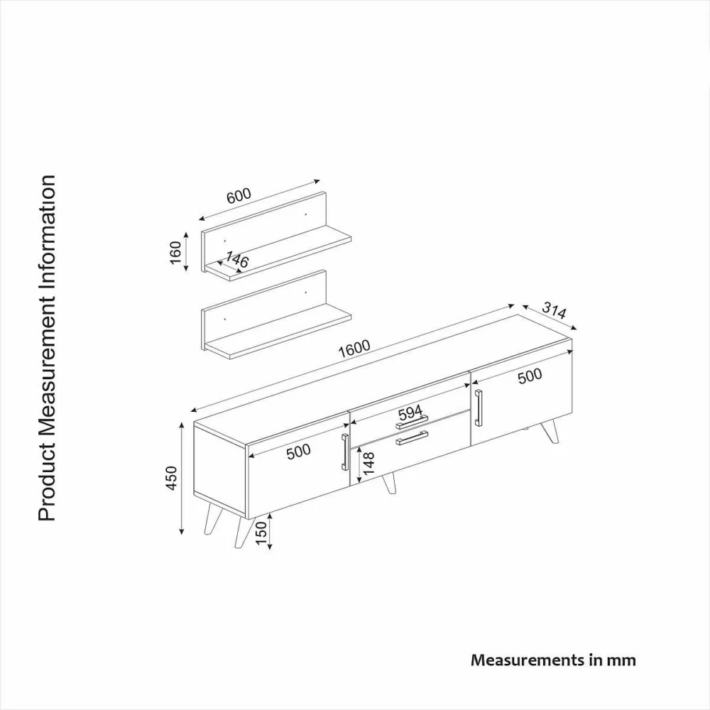Σύνθετο ArteLibre OREGON Sapphire/Ανθρακί/Μπεζ Μοριοσανίδα 160x32x45cm