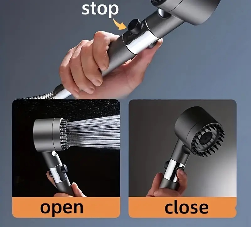 Τηλέφωνο-ακροφύσιο ντουζιέρας με εργονομικό σχεδιασμό, διακόπτη On/Off και 3 επιλογές πίεσης.